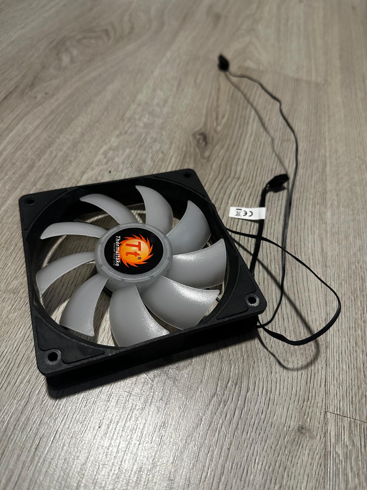 Pongo a la venta este ventilador de gabinete de segunda mano de la reconocida marca Thermaltake, esencial para mantener la temperatura interna de tu computadora bajo control.